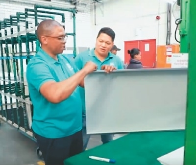 伊萬(wàn)(左)在海信南非工業(yè)園冰箱工廠工作。