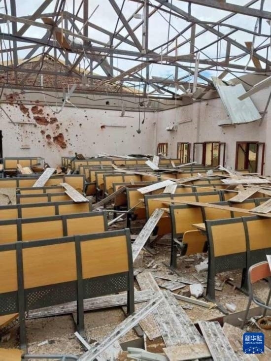 這是8月26日在蘇丹北達(dá)爾富爾州首府法希爾市拍攝的在炮擊中損毀的學(xué)校(手機照片)。新華社發(fā)(蘇丹北達(dá)爾富爾州衛(wèi)生部供圖)