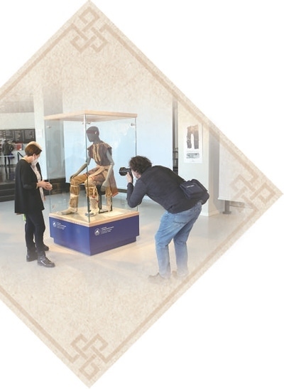 2022年,新疆吐魯番盆地洋海墓地IM21出土服飾復原品在德國開姆尼茨考古博物館展出。德國開姆尼茨考古博物館供圖