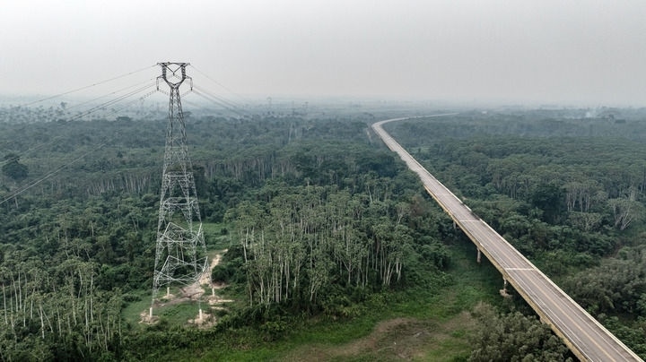 這張2024年9月13日拍攝的照片顯示,在巴西朗多尼亞州,EDP輸變電項(xiàng)目線路穿越熱帶雨林(無人機(jī)照片)。巴西EDP輸變電項(xiàng)目是位于巴西北部的阿克里州和朗多尼亞州的綠地輸變電工程,山東電建一公司承擔(dān)了該項(xiàng)目的EPC總承包任務(wù)。項(xiàng)目全面完成后,將極大提升當(dāng)?shù)仉娋W(wǎng)的輸電能力,增強(qiáng)電力供應(yīng)的可靠性和穩(wěn)定性,對(duì)巴西北部地區(qū)的可持續(xù)發(fā)展和經(jīng)濟(jì)增長(zhǎng)具有重要意義。新華社記者 王天聰 攝