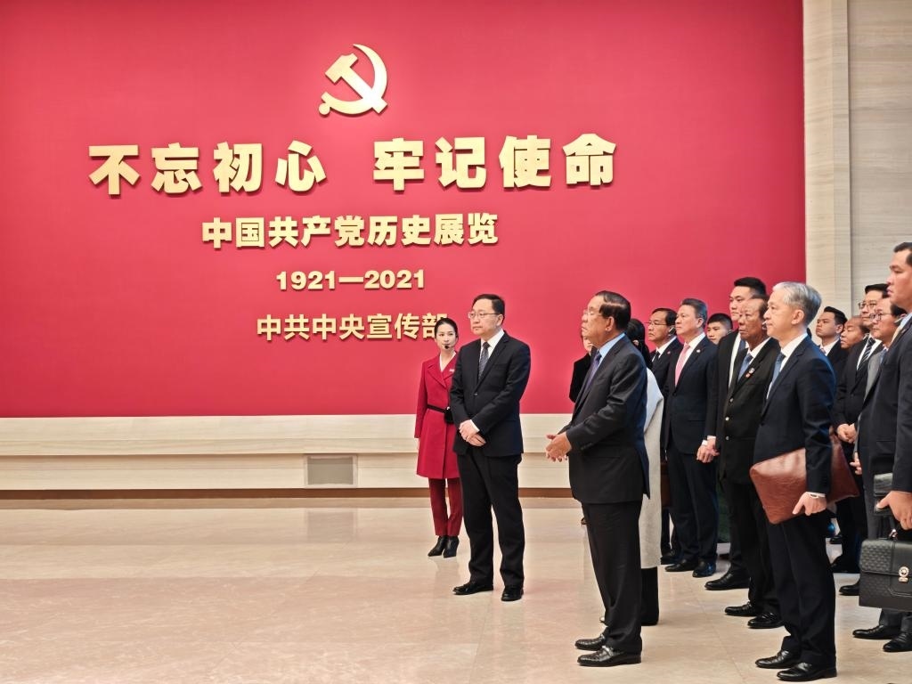 “了解研究歷史,對(duì)推進(jìn)實(shí)現(xiàn)國(guó)家富強(qiáng)、開創(chuàng)人類美好未來(lái)具有重要意義。”12月4日上午,正在對(duì)中國(guó)進(jìn)行正式友好訪問的柬埔寨人民黨主席、參議院主席洪森專程來(lái)到中國(guó)共產(chǎn)黨歷史展覽館參觀。一張張歷史圖片、一件件文獻(xiàn)實(shí)物、一個(gè)個(gè)逼真場(chǎng)景……展廳內(nèi),洪森不時(shí)駐足,由衷贊嘆中國(guó)共產(chǎn)黨領(lǐng)導(dǎo)中國(guó)取得的發(fā)展成就。