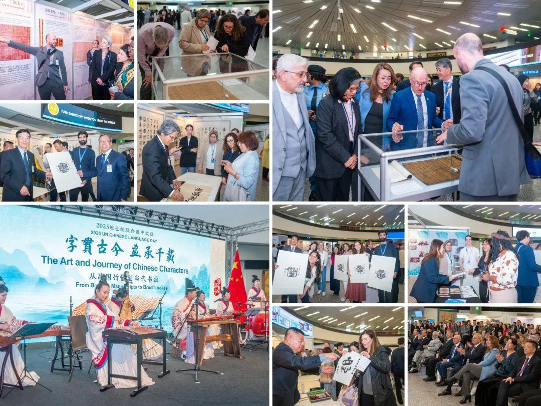 來(lái)賓懷著濃厚興趣參觀戰(zhàn)國(guó)竹簡(jiǎn)、中國(guó)傳統(tǒng)繪畫和書法作品展覽,深切感受中國(guó)文字、文化、文明的發(fā)展傳承、美學(xué)意境和時(shí)代意義。蘇士澍、徐里、包俊宜、羅楊等書畫家現(xiàn)場(chǎng)揮毫潑墨,身著漢服的藝術(shù)家演奏《春江花月夜》《滄海一聲笑》等傳統(tǒng)名曲,獲得觀眾陣陣熱烈掌聲。來(lái)賓們表示,聯(lián)合國(guó)中文日選在中國(guó)傳統(tǒng)節(jié)氣“谷雨”,正像中國(guó)在聯(lián)合國(guó)發(fā)揮的重要作用,帶來(lái)春天般的希望和動(dòng)力。