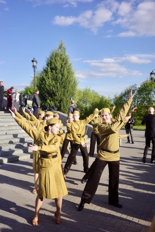 莫斯科勝利廣場(chǎng),是1995年為了紀(jì)念反法西斯戰(zhàn)爭(zhēng)勝利50周年而建成。當(dāng)?shù)貢r(shí)間5月6日,勝利廣場(chǎng)上,當(dāng)?shù)啬贻p人穿上二戰(zhàn)時(shí)蘇聯(lián)軍隊(duì)的制服,在音樂(lè)聲中翩翩起舞,吸引了很多人駐足。劉少華 攝