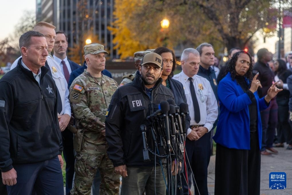 11月26日,在美國首都華盛頓,聯(lián)邦調查局局長帕特爾在新聞發(fā)布會上回答記者提問。新華社記者 胡友松 攝
