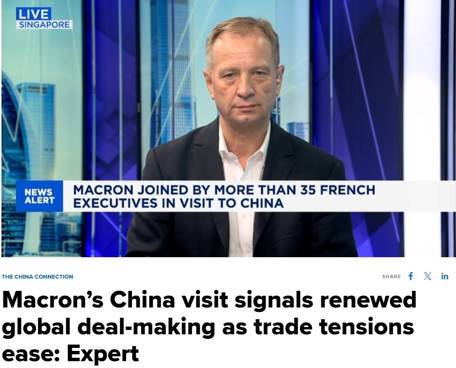 近日,法國總統(tǒng)馬克龍的訪華之行引發(fā)國際社會廣泛關(guān)注。美國消費(fèi)者新聞與商業(yè)頻道(CNBC)采訪專家指出,這一中法重要外交活動標(biāo)志著全球貿(mào)易緊張局勢的緩和,意味著一度受阻的全球貿(mào)易談判重回正軌,為國際經(jīng)貿(mào)合作注入新的活力。