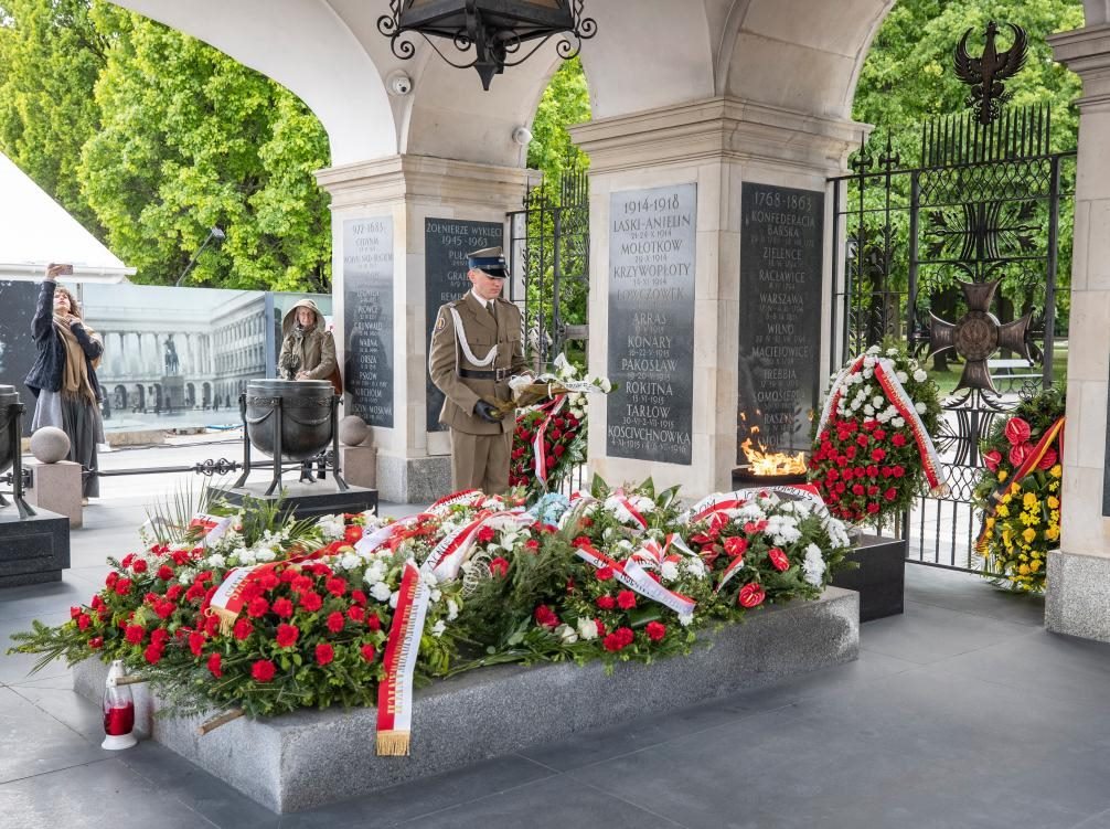 5月8日,人們在波蘭首都華沙的無名烈士墓參加紀(jì)念活動(dòng)。新華社記者 張帆 攝