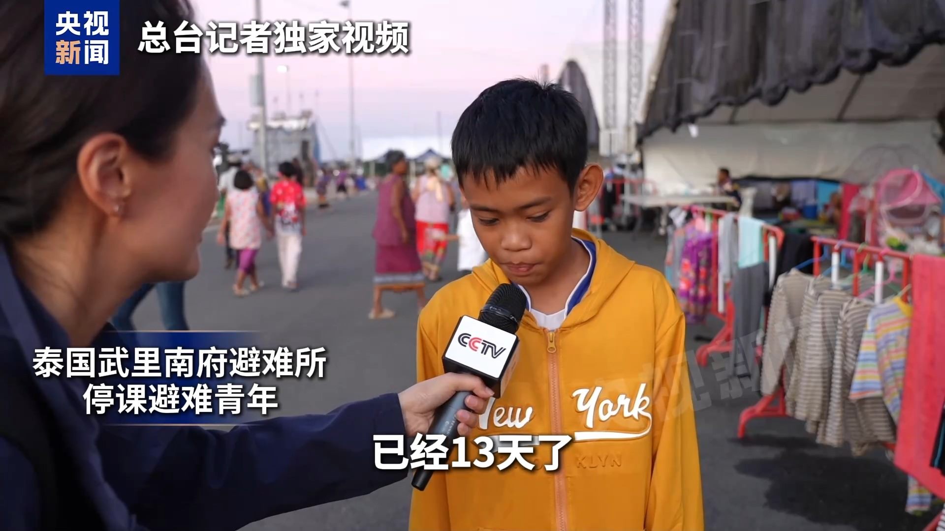 泰國武里南府避難青少年:已經(jīng)差不多11天12天了。因?yàn)樘﹪图砥艺g突然的沖突,我來到這里。