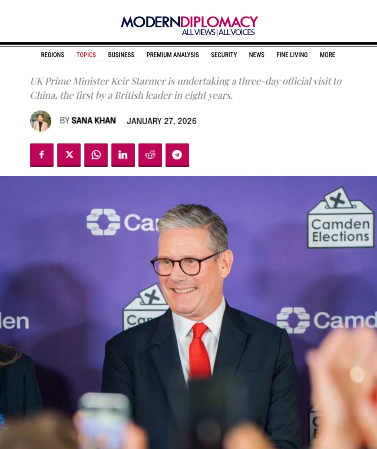 歐洲《現(xiàn)代外交》網(wǎng)站報道稱,斯塔默此行標志著英國外交策略的轉(zhuǎn)變,倫敦正在根據(jù)地緣政治變化重新評估其全球伙伴關(guān)系。報道稱,斯塔默將探索與世界第二大經(jīng)濟體的經(jīng)濟和貿(mào)易合作途徑,旨在吸引投資,擴大英國企業(yè)的市場準入,并與中國就氣候變化、人工智能和公共衛(wèi)生等共同全球關(guān)切展開交流。報道還分析稱,此次訪問展示了中等大國如何通過多元化伙伴關(guān)系來保護本國利益,以應對國際關(guān)系中系統(tǒng)性的不確定性。