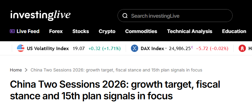 美國知名財(cái)經(jīng)網(wǎng)站Investinglive重點(diǎn)新一年度政府工作報(bào)告,該報(bào)告通常會(huì)設(shè)定年度主要目標(biāo)和政策任務(wù),并最清晰地傳遞出中央政府的宏觀政策取向。