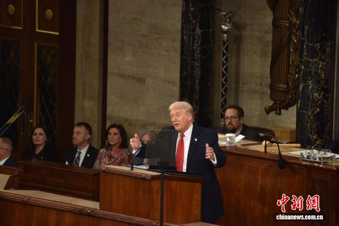 當地時間2月24日晚,美國總統(tǒng)特朗普在國會參眾兩院聯(lián)席會議上發(fā)表國情咨文講話,聚焦經濟、移民等議題。這是特朗普在本總統(tǒng)任期內首次發(fā)表國情咨文。 記者 沙晗汀 攝