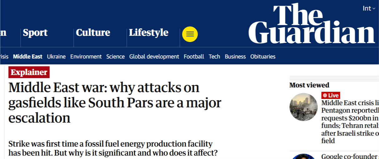 在以色列空軍當?shù)貢r間3月18日襲擊了位于伊朗南部布什爾市的伊朗“主要天然氣設(shè)施”后,19日,伊朗方面表示已發(fā)動“真實承諾-4”行動第63波攻勢,“焚毀”與美國相關(guān)的石油設(shè)施作為報復。相關(guān)聲明稱,伊朗同美國和以色列的戰(zhàn)爭已進入“新階段”。多家外媒指出,這是美以發(fā)動對伊軍事打擊以來,首次襲擊伊朗在海灣的能源生產(chǎn)設(shè)施,標志著戰(zhàn)爭的“重大升級”。