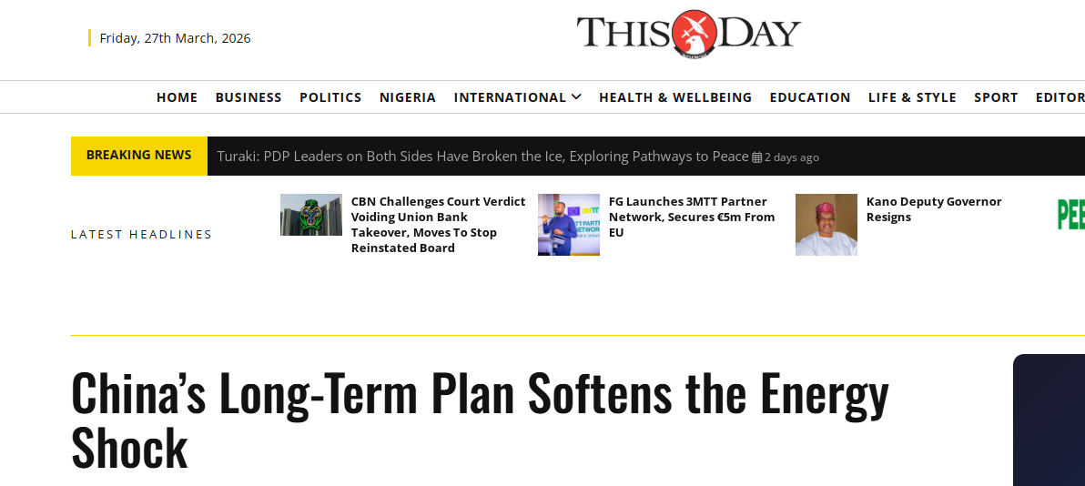 尼日利亞主流媒體《今日報(bào)》28日的報(bào)道說,中東局勢惡化令全球能源市場陷入困境,多國在油價(jià)飆升中承受重壓。在這場風(fēng)暴中,有一個(gè)國家顯得格外從容——中國。