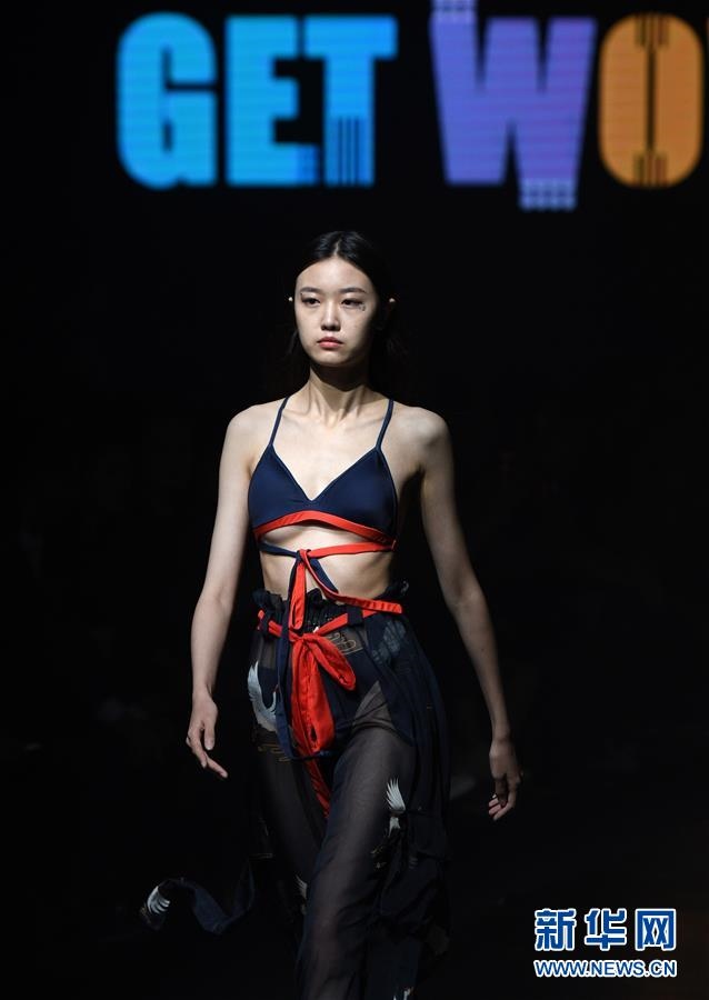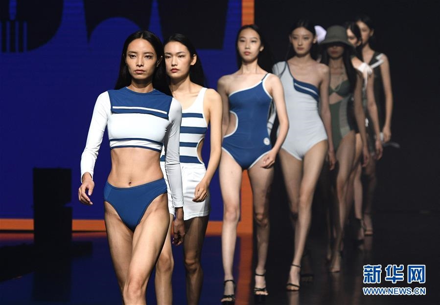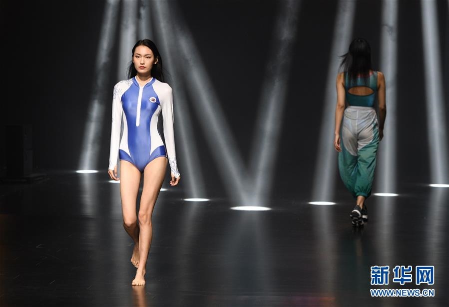9月1日,模特在“泳享青春不負未來”第五屆互聯(lián)網(wǎng)時尚設計大賽決賽上展示服裝。當晚,以“新銳力量——原力覺醒”為主題的東方時尚季·第20屆中國(青島)國際時裝周落下帷幕。新華社記者李紫恒攝