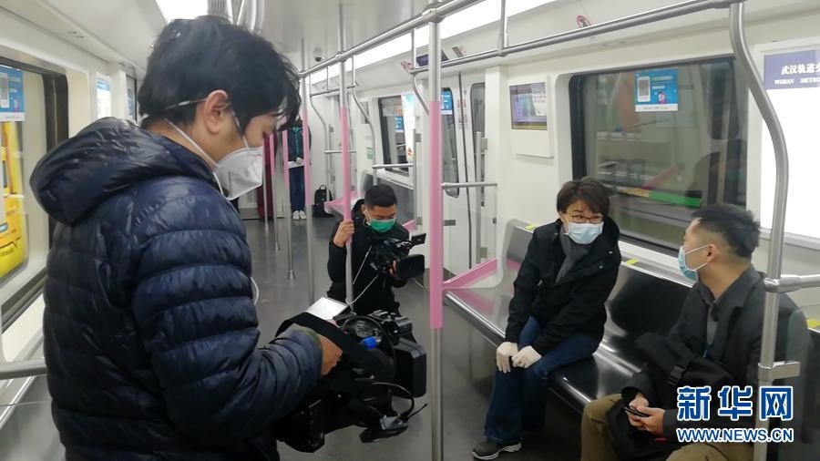 2020年3月,中央廣播電視總臺(tái)新聞中心記者董倩(右二)在武漢采訪報(bào)道地鐵重啟。新華社發(fā)