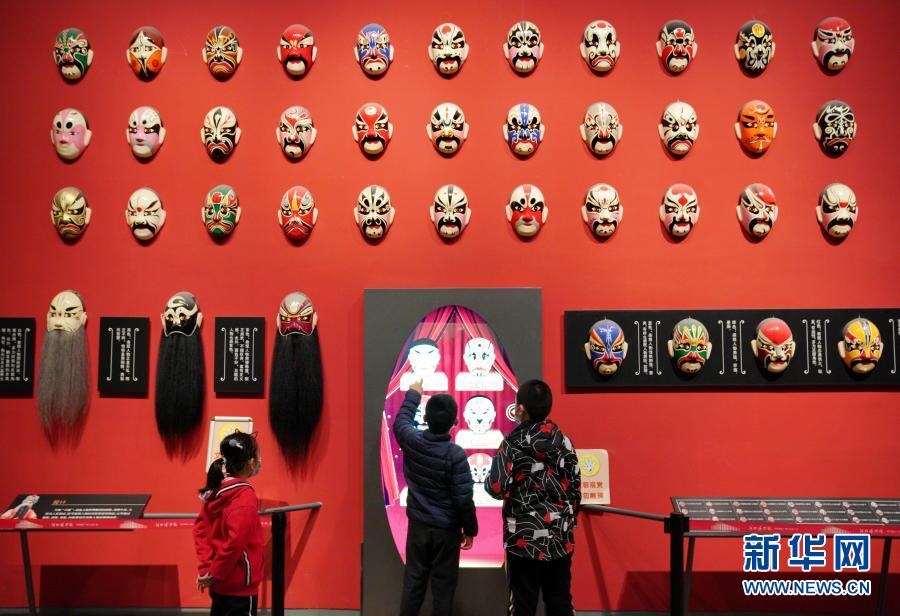 2月22日,小朋友在河北博物院《金聲天韻——河北梆子藝術展》展廳內(nèi)繪制電子臉譜 新華社記者牟宇攝