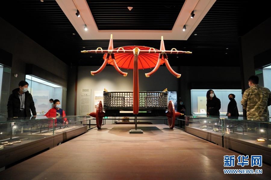 2月22日,參觀者在河北博物院《戰(zhàn)國雄風——古中山國》展廳內(nèi)參觀 新華社記者牟宇攝