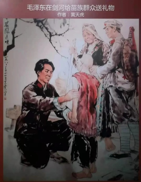 “當(dāng)我等行經(jīng)劍河縣附近之某村落時,見路邊有一老婦與一童子,身穿單衣,倒于路邊,氣息尚存……正詢問間,赤軍領(lǐng)袖毛澤東至,告以老婦所言。當(dāng)時毛即時從身上脫下毛線衣一件及行李中取出被單一條,授予老婦,并命人給以白米一斗。老婦則連連道謝含笑而去?!?/p>