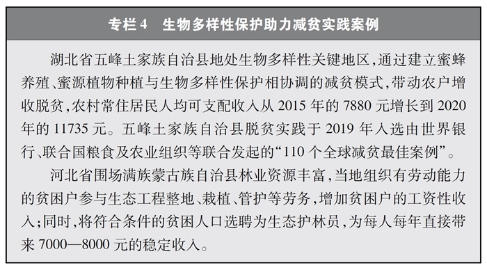 推動(dòng)履約取得明顯成效。中國為推動(dòng)實(shí)現(xiàn)2020年全球生物多樣性保護(hù)目標(biāo)和聯(lián)合國2030年可持續(xù)發(fā)展目標(biāo)作出積極貢獻(xiàn)。自發(fā)布《中國生物多樣性保護(hù)戰(zhàn)略與行動(dòng)計(jì)劃》(2011-2030年)以來,中國通過完善法律法規(guī)和體制機(jī)制、加強(qiáng)就地和遷地保護(hù)、推動(dòng)公眾參與、深化國際合作等政策措施,有力推動(dòng)改善了生態(tài)環(huán)境。其中,設(shè)立陸地自然保護(hù)區(qū)、恢復(fù)和保障重要生態(tài)系統(tǒng)服務(wù)、增加生態(tài)系統(tǒng)的復(fù)原力和碳儲(chǔ)量等3項(xiàng)目標(biāo)超額完成,生物多樣性主流化、可持續(xù)管理農(nóng)林漁業(yè)、可持續(xù)生產(chǎn)和消費(fèi)等13項(xiàng)目標(biāo)取得良好進(jìn)展。