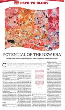 作為中國(guó)日?qǐng)?bào)外籍記者,穆迪一共發(fā)表了700多篇封面報(bào)道和評(píng)論,總計(jì)100多萬(wàn)字。從2019年為《中國(guó)日?qǐng)?bào)》“慶祝新中國(guó)成立七十周年??弊珜?xiě)題為《新時(shí)代,共未來(lái)》的封面文章,到今年建黨百年??系男侣劮治觥缎聲r(shí)代的潛力》,“新時(shí)代中國(guó)”是穆迪近年寫(xiě)作的主題。