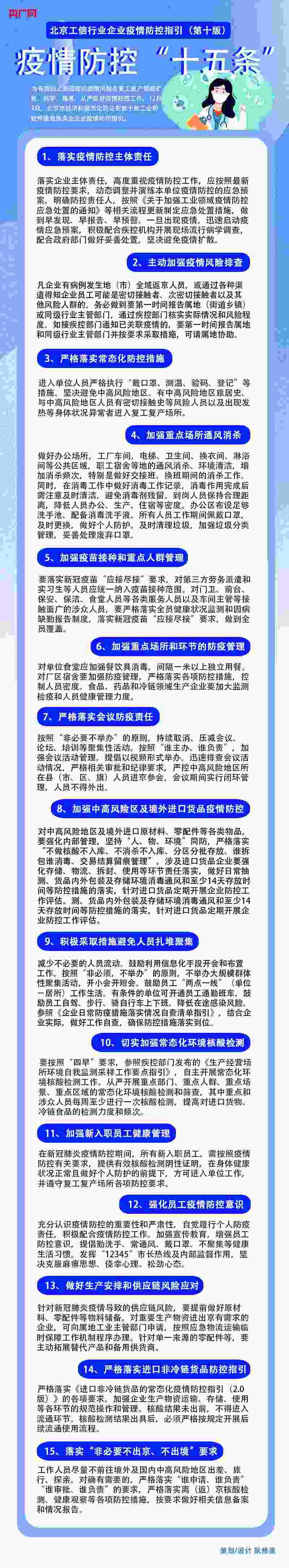 央廣網北京12月5日消息 為有效防止新冠肺炎疫情風險在復工復產領域擴散,科學、精準、從嚴抓好疫情防控工作,12月3日,北京市經濟和信息化局公布第十版工業(yè)和軟件信息服務業(yè)企業(yè)疫情防控指引。