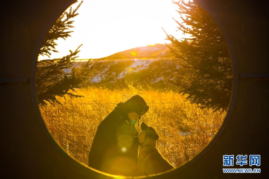 孫慧敏是內(nèi)蒙古出入境邊防檢查總站興安邊境管理支隊三岔邊境檢查站的警犬訓導員。他和警犬“戰(zhàn)友們”默默地維護邊境地區(qū)安全穩(wěn)定。新華網(wǎng)發(fā)(包青松攝)