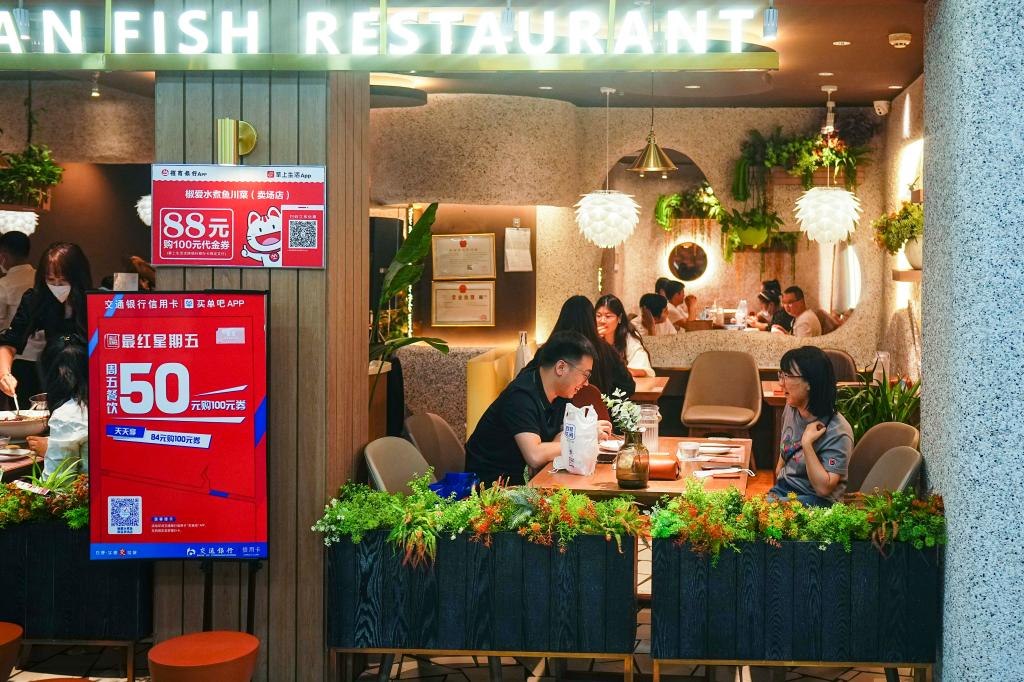 2022年5月28日,市民在長(zhǎng)春市一家餐廳內(nèi)用餐。自這一天零時(shí)起,長(zhǎng)春市各類生產(chǎn)經(jīng)營主體全面恢復(fù)營業(yè)。新華社記者許暢攝