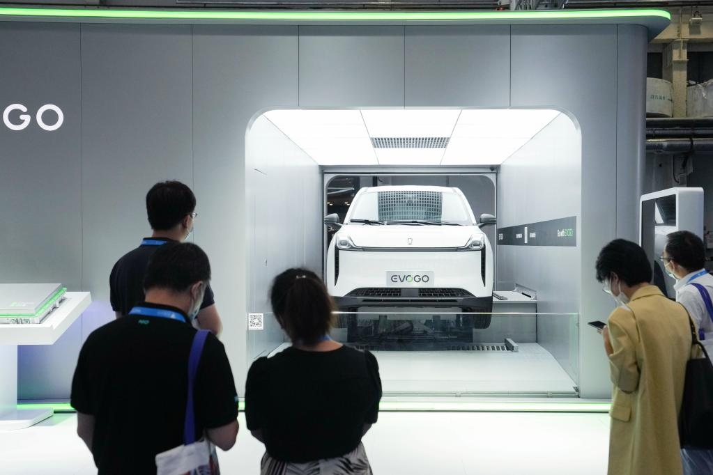 在電池制造企業(yè)寧德時代的展臺,一臺為新能源汽車更換電池的換電站正進行演示。“希望通過最新研發(fā)的換電產(chǎn)品,讓電池成為共享資產(chǎn),化解續(xù)航里程、補電便捷性和購置使用成本三大電動車用戶痛點?!睂幍聲r代相關(guān)負責人表示,未來換電模式將和充電模式互為補充,共同支撐消費者的補能需求。