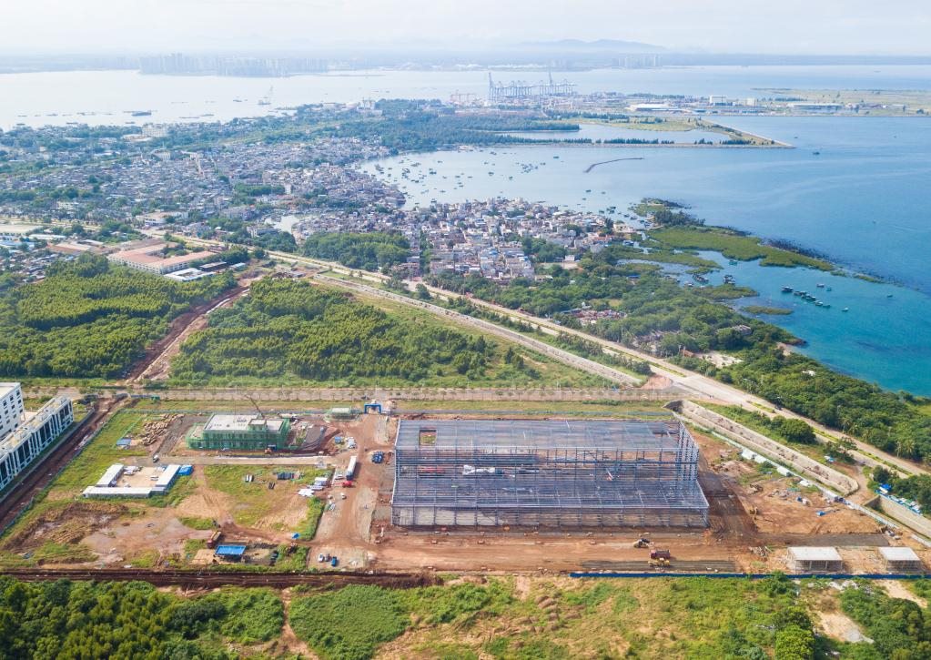 圖為10月2日在海南洋浦經(jīng)濟開發(fā)區(qū)拍攝的建設(shè)中的申能電氣風電新能源裝備產(chǎn)業(yè)項目(無人機照片)。新華社記者蒲曉旭攝