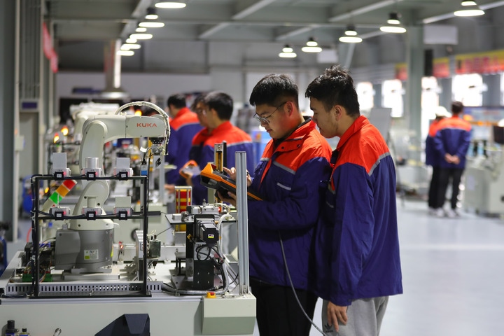 圖為11月2日,在沈陽工學(xué)院工業(yè)機(jī)器人實(shí)訓(xùn)中心,機(jī)器人工程專業(yè)學(xué)生進(jìn)行工業(yè)機(jī)器人基礎(chǔ)實(shí)踐應(yīng)用操作。近年來,沈陽工學(xué)院全力建設(shè)工業(yè)機(jī)器人實(shí)訓(xùn)中心,將車間搬進(jìn)校園。針對企業(yè)需求,學(xué)校開展機(jī)械加工等實(shí)操課程,有力提升學(xué)生就業(yè)水平。新華社記者 楊青 攝