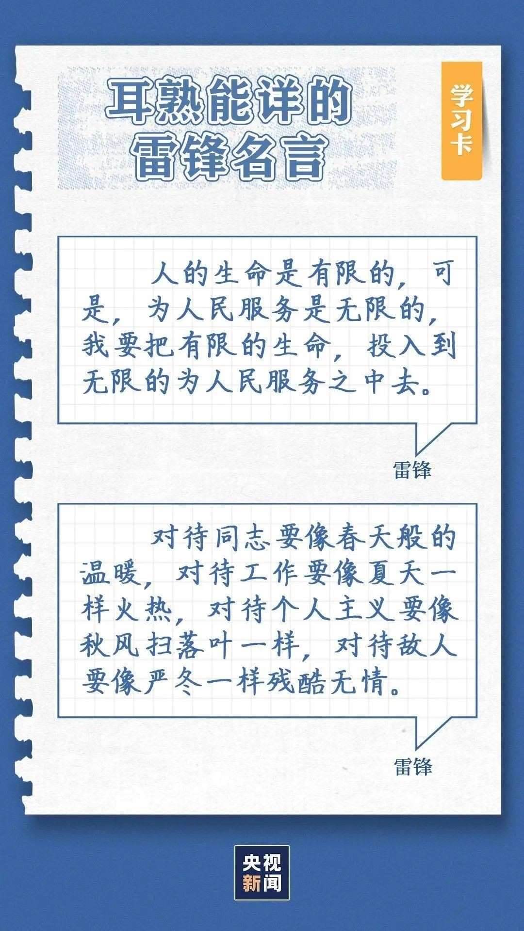 中共中央總書記、國家主席、中央軍委主席習(xí)近平近日作出重要指示指出,今年是毛澤東等老一輩革命家為雷鋒同志題詞60周年。60年來,學(xué)雷鋒活動(dòng)在全國持續(xù)深入開展,雷鋒的名字家喻戶曉,雷鋒的事跡深入人心,雷鋒精神滋養(yǎng)著一代代中華兒女的心靈。實(shí)踐證明,無論時(shí)代如何變遷,雷鋒精神永不過時(shí)。在新時(shí)代新征程上,如何弘揚(yáng)雷鋒精神?點(diǎn)擊學(xué)習(xí)卡↓