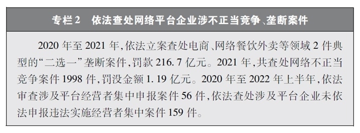 保障公平競(jìng)爭(zhēng)的網(wǎng)絡(luò)市場(chǎng)環(huán)境。隨著網(wǎng)絡(luò)平臺(tái)企業(yè)不斷擴(kuò)展自身的體量和實(shí)力,“掐尖式并購”、無正當(dāng)理由屏蔽鏈接、“二選一”、大數(shù)據(jù)殺熟、流量挾持等妨礙市場(chǎng)公平競(jìng)爭(zhēng)的問題也逐漸凸顯。中國(guó)積極回應(yīng)人民群眾訴求,在支持網(wǎng)絡(luò)平臺(tái)企業(yè)創(chuàng)新發(fā)展的同時(shí),依法規(guī)范和引導(dǎo)資本健康發(fā)展,采取多種治理平臺(tái)競(jìng)爭(zhēng)失序的執(zhí)法舉措。聚焦大型網(wǎng)絡(luò)平臺(tái)價(jià)格欺詐、低價(jià)傾銷等重點(diǎn)問題,通過行政約談、行政指導(dǎo)、規(guī)則指引等多種監(jiān)管手段,整治壟斷和不正當(dāng)競(jìng)爭(zhēng)行為。圍繞民生、金融、科技、傳媒等重點(diǎn)行業(yè),依法審查涉及平臺(tái)經(jīng)營(yíng)者集中案件,防止可能妨礙市場(chǎng)競(jìng)爭(zhēng)和創(chuàng)新發(fā)展的并購行為,引導(dǎo)網(wǎng)絡(luò)平臺(tái)企業(yè)增強(qiáng)合規(guī)意識(shí),規(guī)范自身經(jīng)營(yíng)行為。通過一系列行動(dòng),平臺(tái)經(jīng)濟(jì)市場(chǎng)環(huán)境不斷優(yōu)化,公平競(jìng)爭(zhēng)的行業(yè)生態(tài)穩(wěn)步向好,中小企業(yè)獲得更廣闊的發(fā)展空間,統(tǒng)一、開放、公平、競(jìng)爭(zhēng)、有序的網(wǎng)絡(luò)競(jìng)爭(zhēng)環(huán)境正在形成。