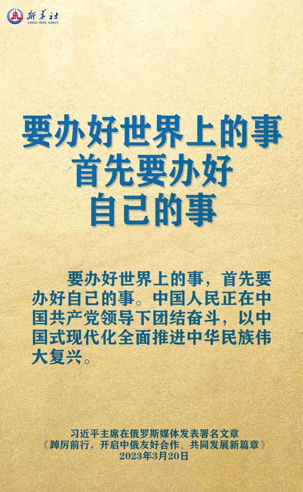 3月20日,在赴莫斯科對俄羅斯聯(lián)邦進(jìn)行國事訪問之際,國家主席習(xí)近平在《俄羅斯報(bào)》和俄新社網(wǎng)站發(fā)表題為《踔厲前行,開啟中俄友好合作、共同發(fā)展新篇章》的署名文章。