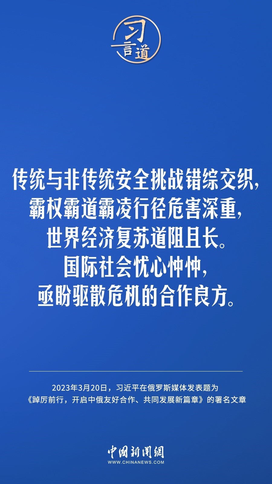 3月20日,在赴莫斯科對俄羅斯聯(lián)邦進(jìn)行國事訪問之際,國家主席習(xí)近平在《俄羅斯報》和俄新社網(wǎng)站發(fā)表題為《踔厲前行,開啟中俄友好合作、共同發(fā)展新篇章》的署名文章。習(xí)近平指出——