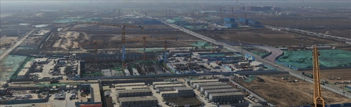 這是位于雄安新區(qū)啟動區(qū)的中國中化雄安總部001大廈項目建設現(xiàn)場(3月30日攝,無人機照片)。