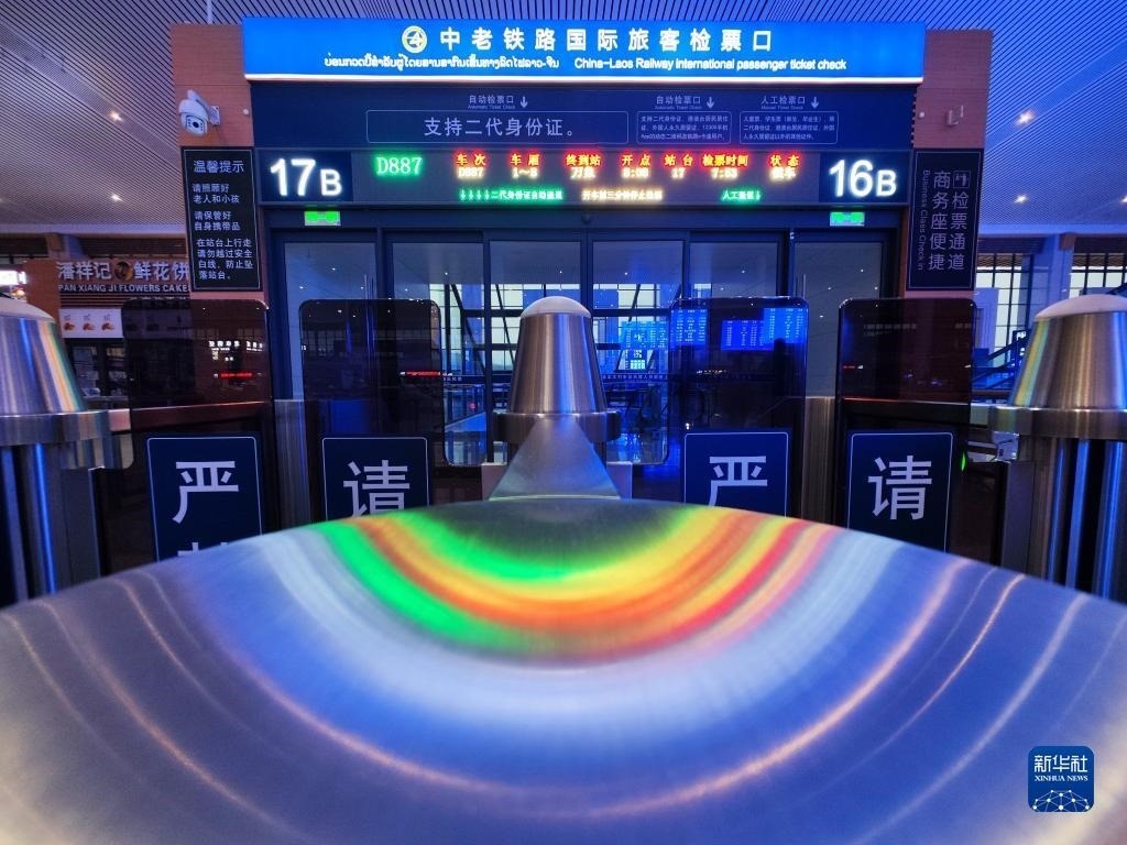 當(dāng)日,中老鐵路開行國際旅客列車,昆明至萬象間可實(shí)現(xiàn)乘火車當(dāng)日通達(dá)。新華社記者 邢廣利 攝