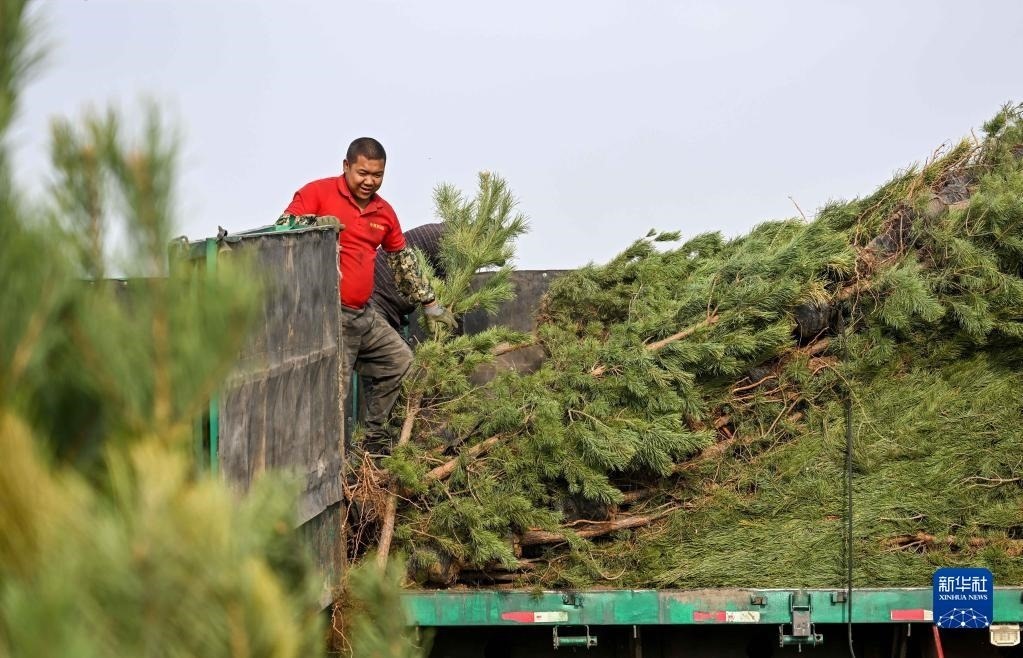 4月15日,在內(nèi)蒙古通遼市科爾沁左翼后旗,治沙工人在運(yùn)送樹苗。