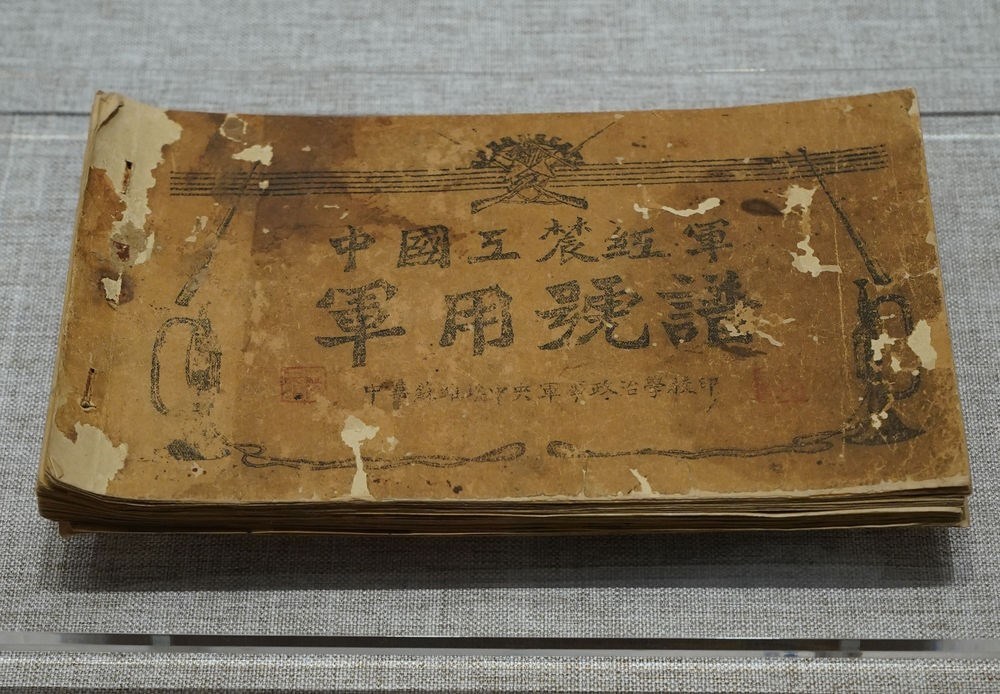 展覽上的寧化縣革命紀(jì)念館藏《中國工農(nóng)紅軍軍用號譜》。 新華社記者 劉穎 攝
