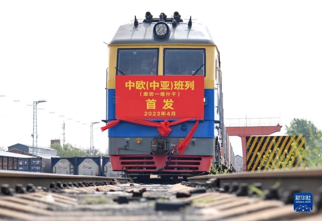 當日,河北省廊坊市正式開通中歐(中亞)班列(廊坊——塔什干)。首列開行的集裝箱班列編組55輛,由廊坊北鐵路貨場始發(fā),經(jīng)霍爾果斯口岸出境,途經(jīng)哈薩克斯坦,最終抵達烏茲別克斯坦塔什干,全程約6000公里,預計運行時間約15天,貨物總重量1400余噸,主要包括保溫管、機械設(shè)備、型材等。新華社發(fā)(劉向攝)