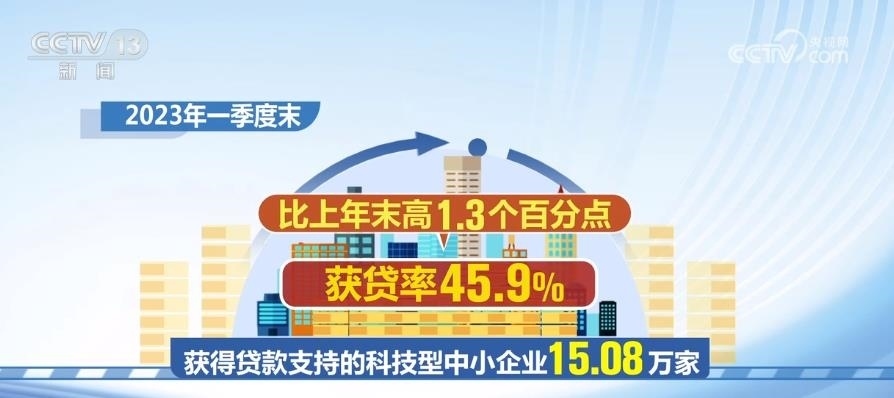 2023年一季度末,獲得貸款支持的科技型中小企業(yè)15.08萬家,獲貸率45.9%,比上年末高1.3個百分點(diǎn)。科技型中小企業(yè)貸款余額1.76萬億元,同比增長25.2%,比上年末高0.9個百分點(diǎn)。