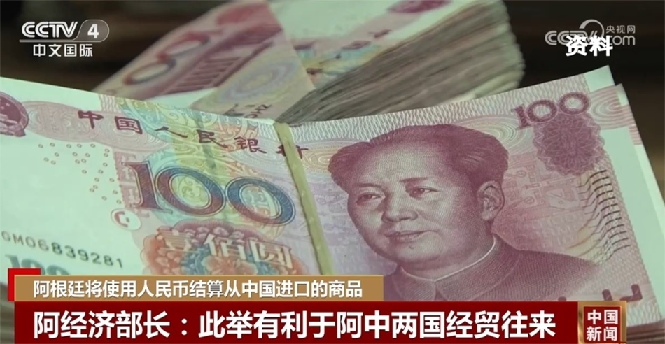 央視網(wǎng)消息:當(dāng)?shù)貢r(shí)間26日,阿根廷經(jīng)濟(jì)部長(zhǎng)馬薩召開(kāi)新聞發(fā)布會(huì),宣布阿根廷將停止使用美元來(lái)支付從中國(guó)進(jìn)口的商品,轉(zhuǎn)而使用人民幣結(jié)算。
