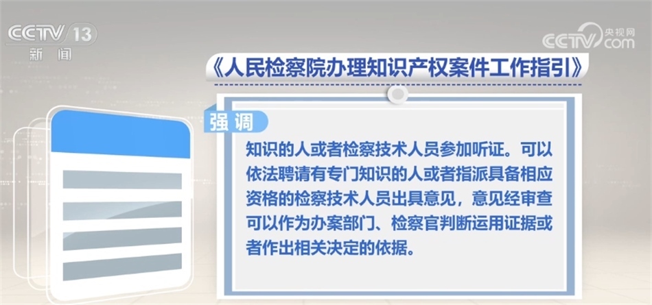 央視網(wǎng)消息:最高人民檢察院昨天(4月26日)發(fā)布了《人民檢察院辦理知識(shí)產(chǎn)權(quán)案件工作指引》,對(duì)知識(shí)產(chǎn)權(quán)刑事案件、民事和行政訴訟監(jiān)督案件以及公益訴訟案件的辦理等方面分別作出了規(guī)定。