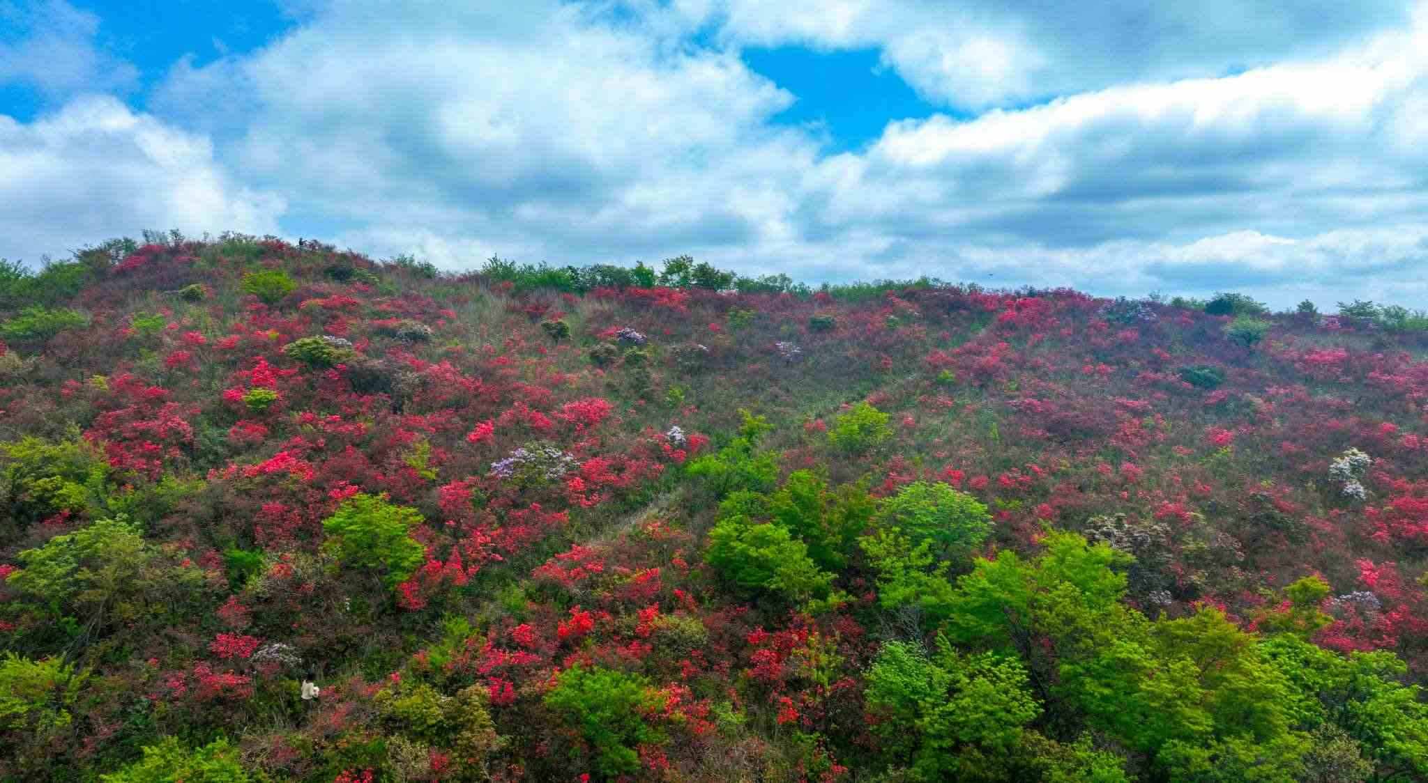 2023年4月26日,杭州,淳安縣楓樹嶺鎮(zhèn)白馬乳洞山自然村,海拔1320米的黃茅尖上千畝野生杜鵑花開正艷。視覺(jué)中國(guó)