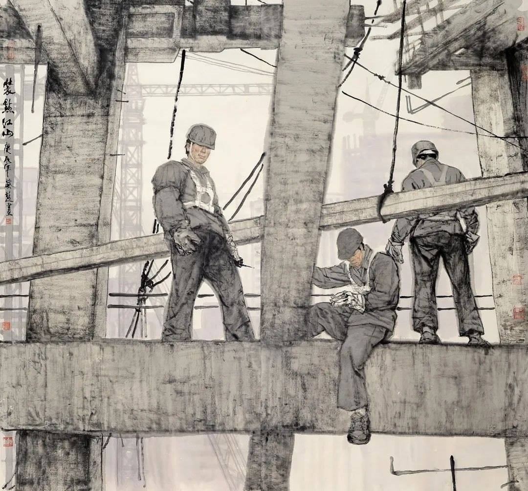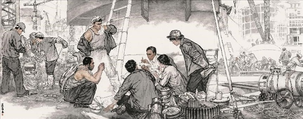 對(duì)傳統(tǒng)現(xiàn)實(shí)主義的繼承和拓展。作為一位具備卓越造型能力的人物畫家,蔡超始終堅(jiān)持深入現(xiàn)實(shí)生活,他以敏銳的觀察力和理解力,以豐富的人生閱歷不斷從生活中提煉創(chuàng)作母題,發(fā)掘常人所不易察覺(jué)的藝術(shù)趣味。因此,蔡超筆下的人物總是葆有鮮活的生命和氣息,他們不是空洞的“人民”,而是牢固與地氣相接,與時(shí)代共呼吸的真正的“人民”,他創(chuàng)造了嶄新的屬于贛鄱大地的人民形象,這是蔡超對(duì)于江西現(xiàn)實(shí)主義繪畫創(chuàng)作最重要的貢獻(xiàn)。同時(shí),蔡超不僅繼承了徐悲鴻、蔣兆和以來(lái)中國(guó)人物畫創(chuàng)作的優(yōu)良傳統(tǒng),更以“筆墨當(dāng)隨時(shí)代”的勇氣和魄力,在工業(yè)題材領(lǐng)域樹(shù)立了令人耳目一新的繪畫范式——這是一個(gè)前無(wú)古人的偉大突破。