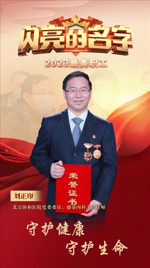 圖:中共中央宣傳部分管日常工作的副部長,文化和旅游部部長  胡和平(右一)中華全國總工會黨組書記、副主席、書記處第一書記 徐留平(左一)為2023“最美職工”代表頒發(fā)證書