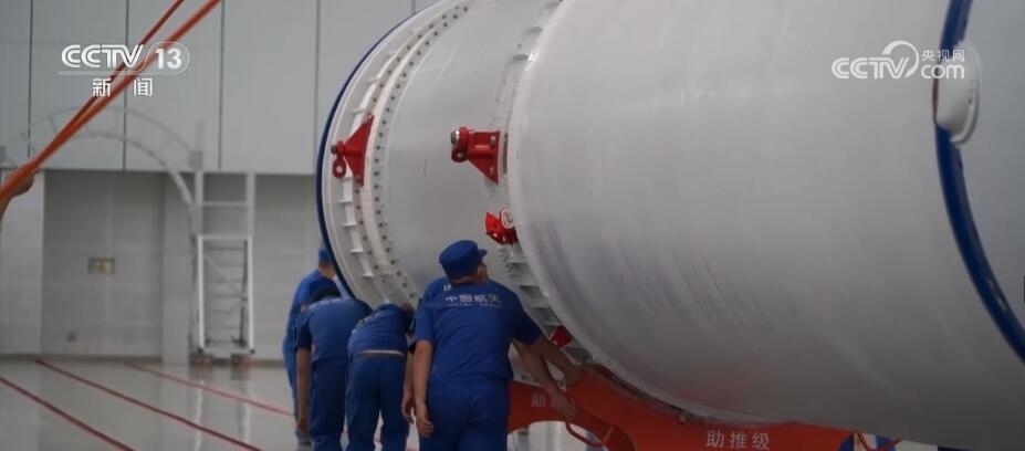 總臺央視記者 陶嘉樹:在我身后的就是天舟貨運(yùn)飛船,它的長度是10.6米,它整體分成兩個部分,下面比較小的這一部分是它的推進(jìn)艙,上面比較大的部分是它的貨物艙。天舟貨運(yùn)飛船總重13.5噸,從天舟六號開始,它的載貨量從以前的6.9噸提高到了7.4噸,是目前世界上運(yùn)貨能力最強(qiáng)的貨運(yùn)飛船之一。