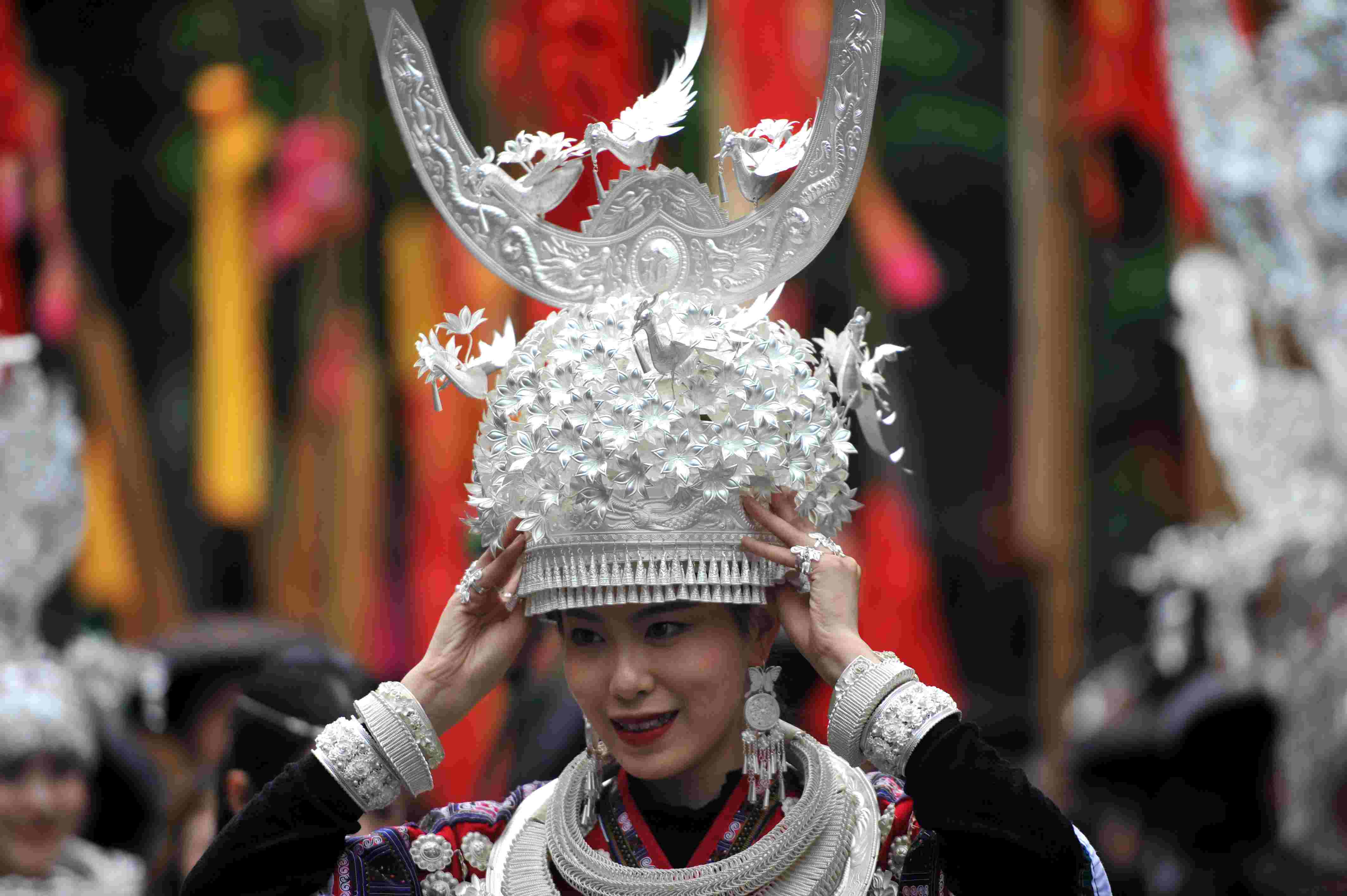 貴州省臺(tái)江縣苗族文化豐富多彩厚重,其服飾是苗族文化的重要載體,苗族女子服飾以靚麗的銀飾、精美的刺繡和獨(dú)特的審美文化內(nèi)涵而被稱為“穿在身上的史書”,成為識(shí)別苗族9大支系的重要標(biāo)識(shí),具有極高的藝術(shù)、觀賞和收藏價(jià)值。 (寧堅(jiān))