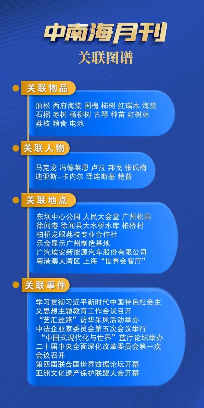 關(guān)聯(lián)地點(diǎn)中的徐聞港、柏橋村等指向總書記的考察地。今年是全面貫徹黨的二十大精神開局之年,習(xí)近平總書記兩會(huì)后首次地方考察選擇了廣東。他對(duì)廣東的干部群眾說(shuō):“廣東是一個(gè)窗口。到廣東來(lái)看一看,了解一下黨的二十大以來(lái)都有哪些新進(jìn)展新氣象。”