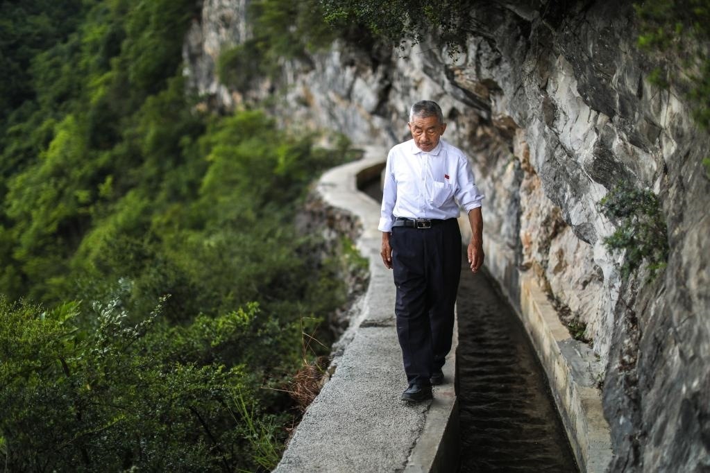 他帶領(lǐng)村民,歷時(shí)30余年,在懸崖絕壁上開鑿出一條主渠長(zhǎng)7200米、支渠長(zhǎng)2200米的“生命渠”;他用實(shí)干兌現(xiàn)誓言,為改善山區(qū)群眾用水條件、實(shí)現(xiàn)脫貧致富作出突出貢獻(xiàn);他一心為民、埋頭苦干、百折不撓……