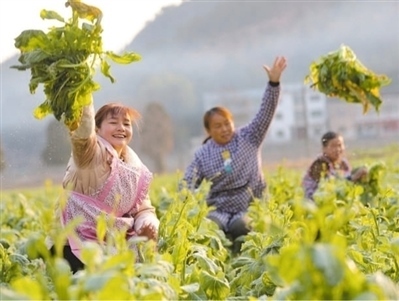 貴州省黔東南苗族侗族自治州岑鞏縣關(guān)莊村芥菜種植基地,村民們?cè)诓墒战娌恕:蕦W(xué)攝(人民視覺)
