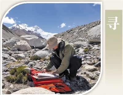 中國(guó)科學(xué)院昆明植物研究所中國(guó)西南野生生物種質(zhì)資源庫采集員在珠峰大本營(yíng)采集種子標(biāo)本。蔡 杰攝(人民視覺)